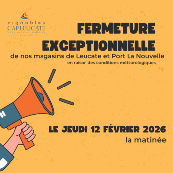 En raison des conditions météorologiques attendues, le magasin de Port-Leucate sera exceptionnellement fermé toute la journée du jeudi 12 février…