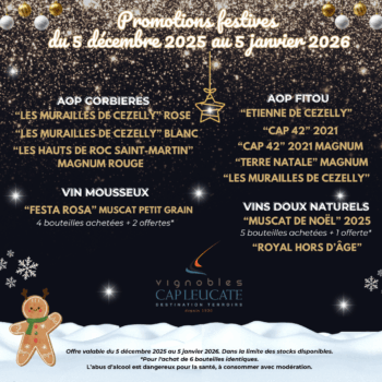 Les fêtes s’installent… et les Promotions Festives des Vignobles Cap Leucate aussi !À partir d’aujourd’hui et jusqu’au 5 janvier 2026,…